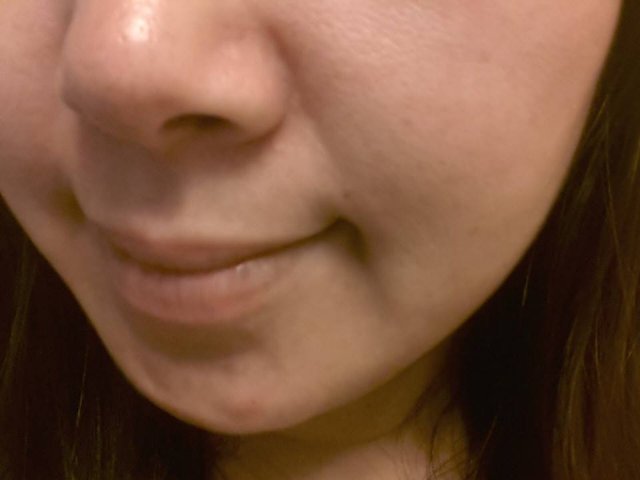 下圖左邊為未使用CNP Laboratory超效遮瑕 BBB 霜 SPF46 PA++ ,右邊為使用過,對比下使用後膚色明顯變得亮麗,毛孔變得不明顯了,面上瑕疵遮蓋的非常好。 BBB 霜非常貼妝,令到妝容感覺好自然。
