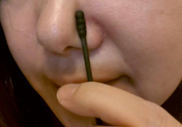 之後用棉簽以打圈方式將黑頭及油脂帶走。